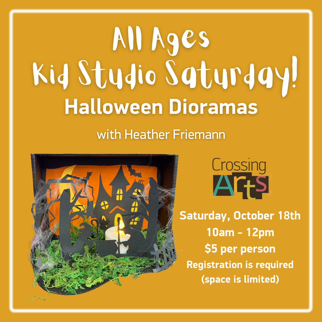 Get ready to kick off the spooky season with a frightfully fun morning at The Crossing Arts! On Saturday, October 18th, join us for an All-Ages Kid Studio where we’ll dive into the magical world of Halloween Dioramas. Whether you're a tiny trick-or-treater or a grown-up ghoul, this hands-on art adventure is perfect for everyone!